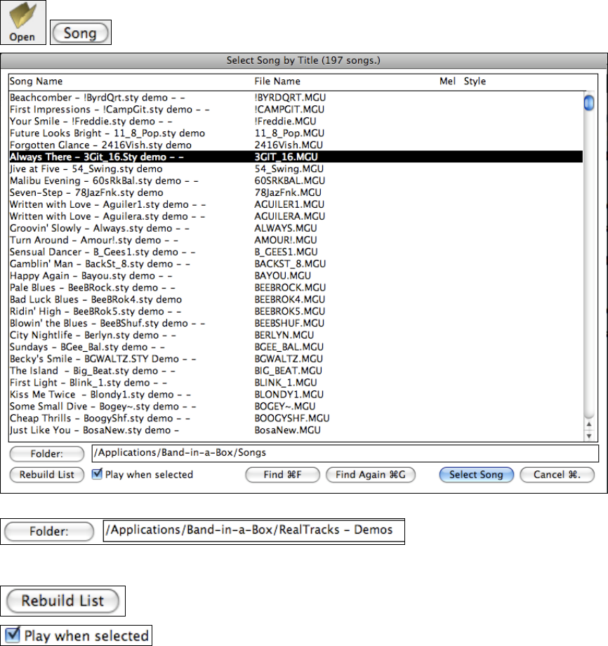 The first time that you select the [Song] button Band-in-a-Box automatically writes the song list for the folder.