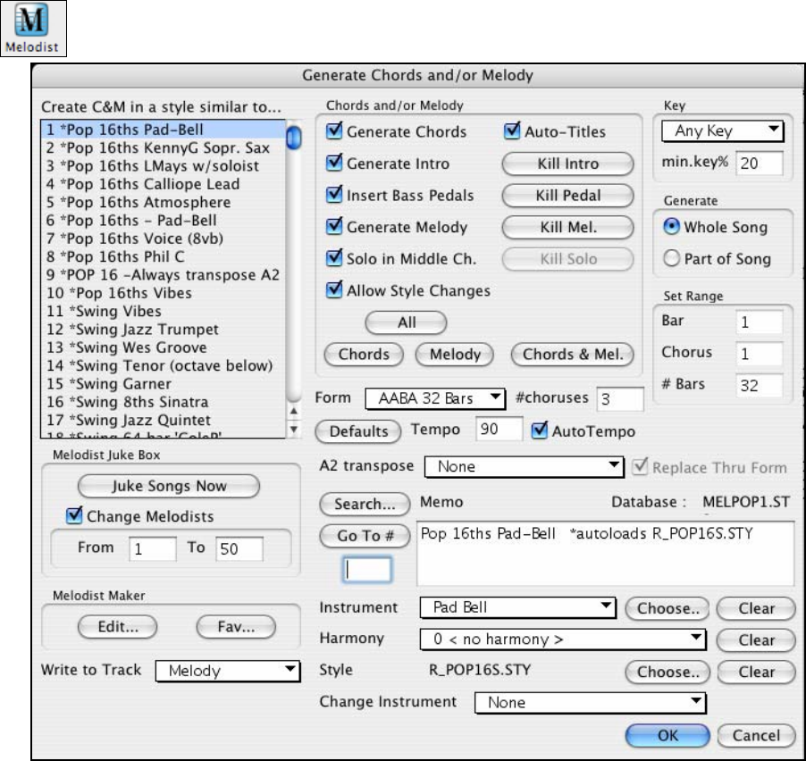 To launch the Melodist, press the [Melodist] button on the main screen, or use the Shift+F5 hot keys.