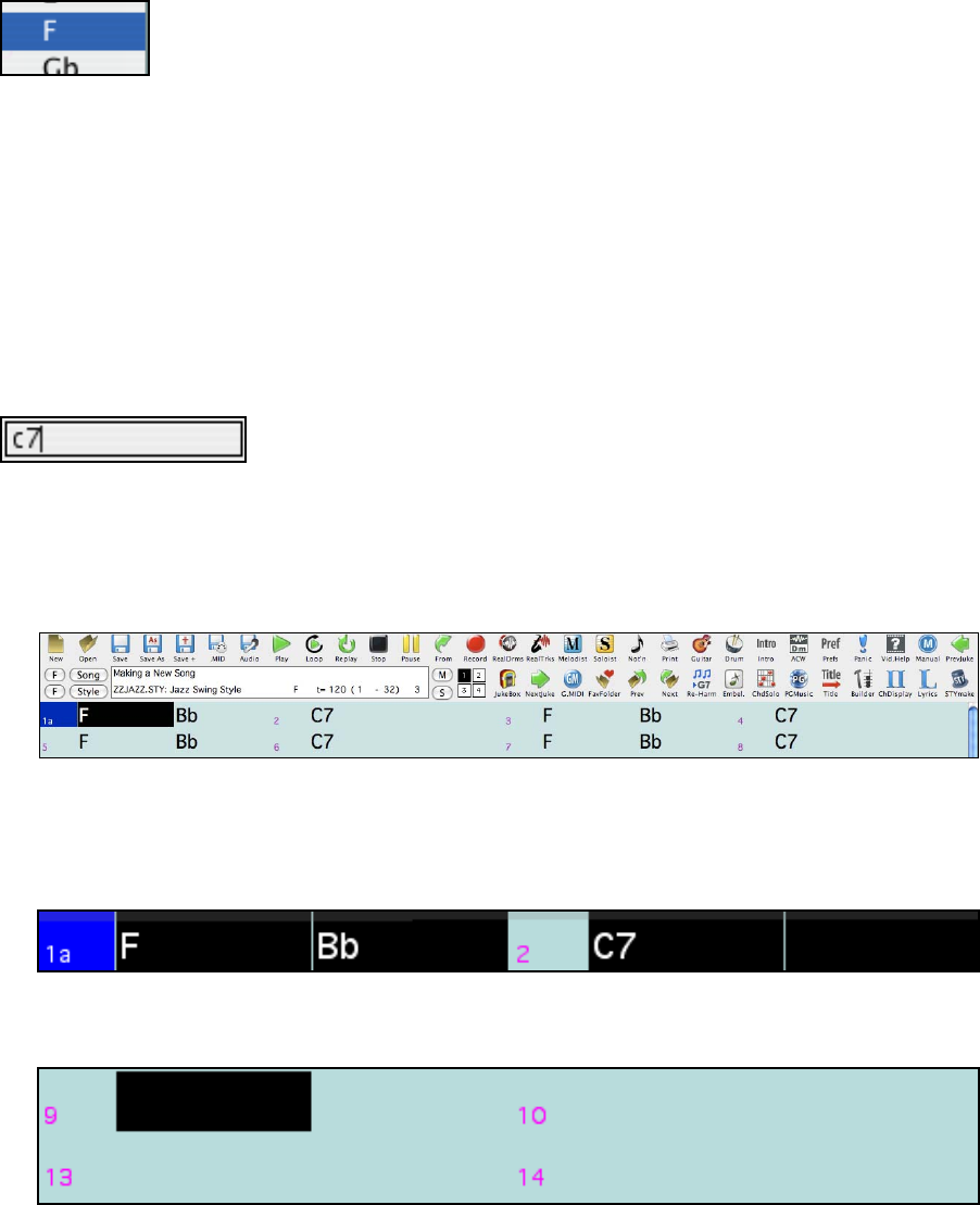 chord box. Press the return key to enter the chord on the Chordsheet and advance the chord cell ½ bar. To enter