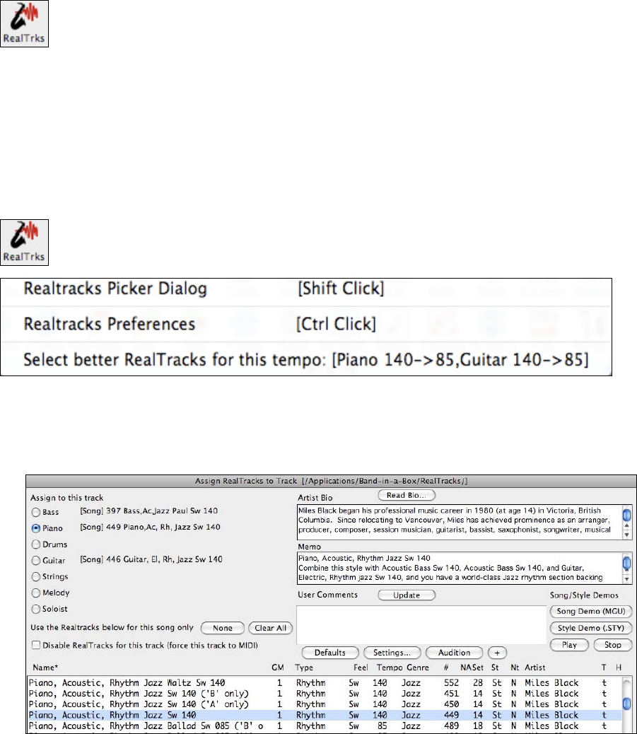 RealTracks Preferences. It also offers suggestions if there RealTracks available that are better suited