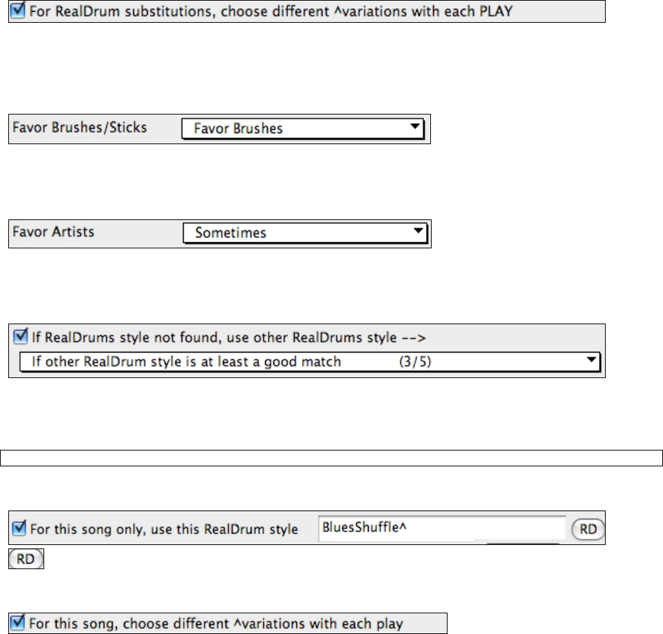 When selecting RealDrums styles to use for a style, Band-in-a-Box will use your preferences for brushes and sticks.