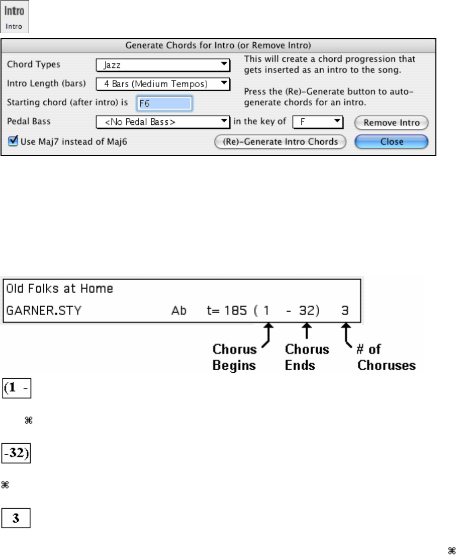 Press the [(Re)-Generate Intro Chords] button to auto-generate chords for an intro.
