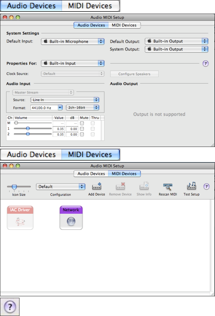 There are two separate windows for Audio Devices and MIDI Devices, selected by clicking on the one you want in