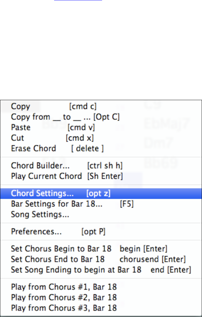 by selecting Chord Settings from the Chordsheet right-click contextual menu (shown) or from the Edit menu.
