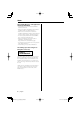 RDS features Changing Language for PTY Function Selecting the Program Type display language. 1 Enter PTY mode Refer to (page 17). 2 Enter Changing Language mode Press the [TI] button. 3 Select the language Push the Control knob to [FM] or [AM]. Each time the knob is pushed, the language switches as shown below. Language English French Swedish German Display "ENGLISH" "FRENCH" "SWEDISH" "GERMAN" 4 Exit Changing Language mode Press the [TI] button.