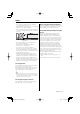 Menu system In FM reception CRSC (Clean Reception System Circuit) Temporarily have reception alternate from stereo to mono to reduce multi-path noise when listening to the FM station. Display "CRSC: ON" "CRSC: OFF" Setting The CRSC is ON. The CRSC is OFF. • Strong electrical fields (such as from power lines) may cause unstable sound quality when CRSC is turned ON. In such a situation, turn it OFF. program) is received, the Receive mode will automatically switch to Analog broadcast only.