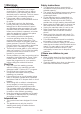 Safety instructions 1 Warnings General Safety • Never place your machine on a carpet covered floor. Otherwise, lack of airflow from below of your machine may cause electrical parts to overheat. This may cause problems with your washing machine. • If the power cable or mains plug is damaged you must call Authorized Service for repair. • Fit the drain hose into the discharge housing securely to prevent any water leakage and to allow machine to take in and discharge water as required.