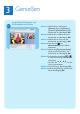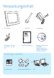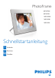 Verpackungsinhalt Standfuß Photoframe Netzadapter PhotoFrame 8FF3CDW 8FF3CME 10FF3CDW 10FF3CME 10FF3CMI Quick start guide 1 2 3 Connect Install Enjoy Eng USB-Kabel für den Anschluss an den PC Schnellstartanleitung Benutzerhandbuch auf CD-ROM Philips PhotoFrame Manager-Software und Benutzerhandbuch Sie benötigen außerdem: oder AC eine Steckdose Speicherkarte/USB-Stick PC