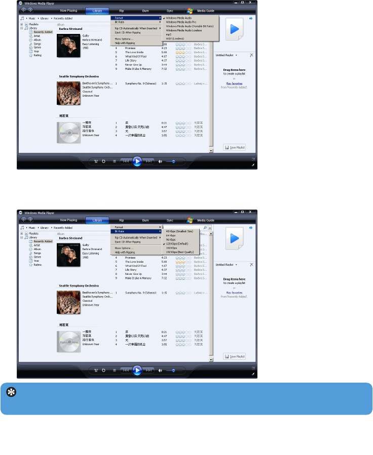 3 Click the down arrow beneath the Rip tab and select Bit Rate to choose the bit rate