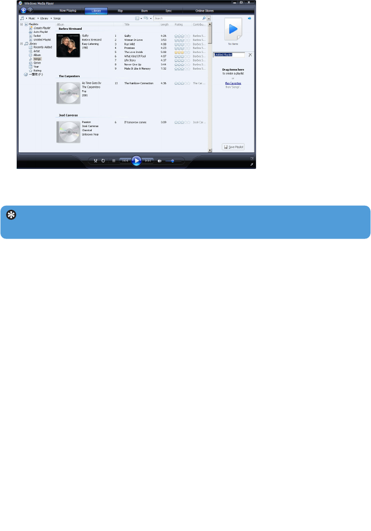 3 To add items to your playlist, drag them from the Contents pane onto the List pane.