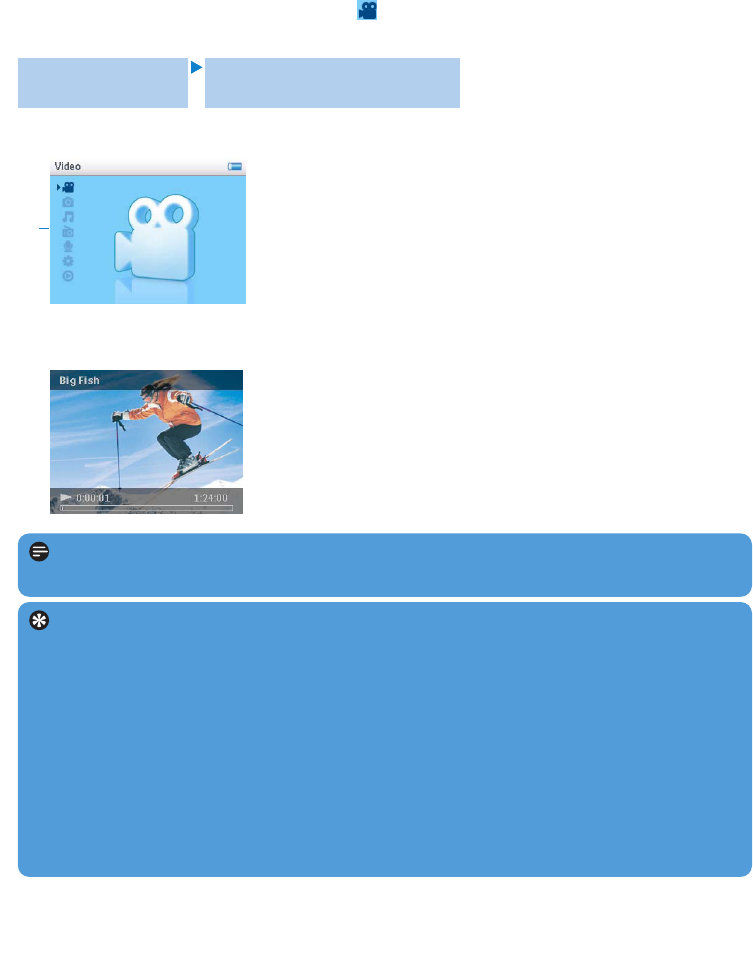 3 Press 3 or 4 to select the video you want to watch, then press 2; or 2 to play your