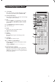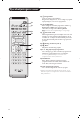Fjernbetjeningens taster (12 (13 (14 (15 (16 (17 (18 (19 12) ı Programliste Til at vise status på programlisten. Brug derefter knapperne < > for at vælge et program. Tryk på knappen ≥ for at vise programmet. 13) ù Lydindstilling Giver mulighed for at skifte programmer i Stereo og Nicam Stereo til Mono eller, ved tosprogede udsendelser, at vælge mellem Dual I og Dual II. Mono står med rødt, når lydindstillingen er brugervalgt. 14) Q Surround sound Aktivering/deaktivering af surroundlyd.