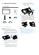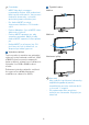 2. Nastavení monitoru (3) Jemně nasaďte podstavec na oblast držáku VESA, až jej západky zajistí. 2.1 Instalace Obsah balení 2 Quick start 3 1 32M1C5200W Register your product and get support at www.philips.com/welcome *Earphone-Hang 3. Po připevnění podstavce pevně uchopte monitor včetně fólie a postavte jej. Nyní můžete odstranit fólii. Při stahování fólie panel nesvírejte, aby se zabránilo jeho prasknutí. Power 1 *HDMI 2 *DP * Liší se podle oblasti Výstraha Tento produkt má zakřivený tvar.