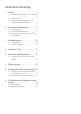 Innehållsförteckning 1. Viktigt ���������������������������������������������� 1 1.1 Säkerhetsåtgärder och underhåll ����������������������������������������������������������� 1 1.2 Notationer �������������������������������������� 3 1.3 Avyttring av produkten och förpackningsmaterialet �������������� 4 2. Installera bildskärmen ���������������� 5 2.1 Installation ������������������������������������� 5 2.2 Använda bildskärmen ����������������� 6 2.