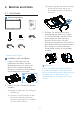 2. Monitor einrichten (3) Bringen Sie den Ständer vorsichtig an der VESA-Halterung an, bis der Ständer an der Verriegelung einrastet. 2.1 Installation Verpackungsinhalt 2 Quick start 3 1 32M1C5200W Register your product and get support at www.philips.com/welcome *Earphone-Hang *HDMI 3. Richten Sie den Monitor nach Anbringung der Basis auf, indem Sie ihn mit beiden Händen sicher gemeinsam mit dem Styropor greifen. Nun können Sie das Styropor herausziehen.