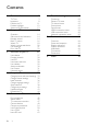 Contents 1 2 3 4 5 EN Get started 3 TV Tour Important Position the TV Product highlights Access more information 3 8 11 12 13 Use your TV 14 Overview Side controls and indicators Remote control Basic TV menus Watch TV Watch a connected device Use Ambilight Enjoy Net TV 14 14 14 16 18 20 21 22 Use more of your TV 27 Use teletext Favorite channels Use EPG Use timers and locks Use subtitles Access multimedia Use Scenea Universal access 27 28 28 28 29 30 31 32 Setup the TV 33 Change picture