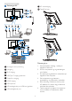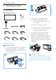 2. Opsætning af skærm 2. Opsætning af skærm 2.1 Installation Emballagens indhold B Line 346B1 Quick 2. Hold på søjlen med begge hænder. (1) F astgør forsigtigt foden til VESA monteringsområdet, indtil låsen låser den på plads. Start Register your product and get support at www.philips.com/welcome (2) S æt foden forsigtigt på stativet.