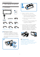 2. Инсталиране на дисплея 2. Инсталиране на дисплея 2.1 Инсталиране 1 Съдържание на пакета B Line 346B1 Quick Start 2. Хванете накрайника с две ръце. (1) Внимателно прикачете стойката към мястото за монтиране на VESA докато механизмът се фиксира. Register your product and get support at www.philips.com/welcome (2) Внимателно монтирайте основата към стойката.