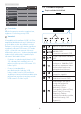 2. Nastavení displeje USB Standby Mode 2.2 Ovládání displeje On Off KVM Popis ovládacích tlačítek Poznámka Kdykoli vypnete monitor vypínačem, vypnou se všechny porty USB. 3 Varování: U bezdrátových zařízení USB 2,4 GHz, například bezdrátová myš, klávesnice a sluchátka, může docházet k rušení. Zařízení s vysokorychlostním signálem využívají rozhraní USB verze 3.0 nebo vyšší, což může omezovat účinnost rádiového přenosu.