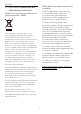 1.Viktigt Taking back/Recycling Information for Customers 1.3 Avyttring av produkten och förpackningsmaterialet Philips establishes technically and economically viable objectives to optimize the environmental performance of the organization's product, service and activities. Direktivet för hantering av elektriskt och elektroniskt avfall - WEEE From the planning, design and production stages, Philips emphasizes the important of making products that can easily be recycled.