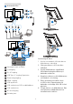 2. Inställning av monitorn 2. Inställning av monitorn 2.1 Installation Förpackningsinnehåll B Line 346B1 Quick 2. Håll övre delen med båda händerna. (1) Fäst försiktigt ställningen till VESA monteringsområdet tills hakarna låser ställningen. Start Register your product and get support at www.philips.com/welcome (2) Sätt försiktigt fast basen på ställningen.