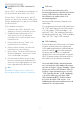 1.Viktigt ventilationsöppningarna eller förhindra avkylningen av bildskärmens elektronik. 1. Viktigt Den här elektroniska användarhandboken är avsedd för alla som använder Philipsbildskärmen. Ta dig tid att läsa den här användarhandboken innan du börjar använda bildskärmen. Den innehåller viktig information och anvisningar om hur du använder bildskärmen.
