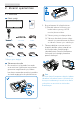 2. Monitörü ayarlama 2. Ekranın ayarlanması 2.1 Kurulum Paket içeriği B Line 346B1 Quick 2. Boyun kısmını iki elinizle tutun. (1) Mandal tabana kilitleninceye kadar tabanı yavaşça VESA montaj alanına takın. Start Register your product and get support at www.philips.com/welcome (2) Tabanı yavaşça sehpaya takın.