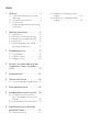 Inhalt 1. Wichtig ������������������������������������������� 1 1.1 Sicherheitsmaßnahmen und Wartung ������������������������������������������ 1 1.2 Hinweise zur Notation ��������������� 4 1.3 Geräte und Verpackungsmaterialien richtig entsorgen �������������������������������������� 5 2. Monitor einrichten ��������������������� 6 2.1 2.2 2.3 2.4 2.