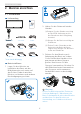 2. Monitor einrichten 2. Monitor einrichten 2.1 Installation 1 Lieferumfang B Line 346B1 Quick Start 2. Halten Sie die Stütze mit beiden Händen. Register your product and get support at www.philips.com/welcome (1) Bringen Sie den Ständer vorsichtig an der VESA-Halterung an, bis der Ständer an der Verriegelung einrastet. * Stand/Base Power (2) B ringen Sie die Basis vorsichtig am Ständer an.
