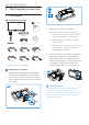 2. Инсталиране на дисплея 2. Инсталиране на дисплея 2.1 Инсталиране 1 Съдържание на пакета B line 346B1 Quick Start 2. Хванете накрайника с две ръце. (1) Внимателно прикачете стойката към мястото за монтиране на VESA докато механизмът се фиксира. Register your product and get support at www.philips.