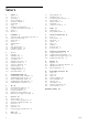 Kanālu saraksta kopēšana 28 Kanālu saraksta kopēšana, augšupielāde 29 Kanālu saraksta kopēšana, kopēšana 28 Kanālu saraksti 26 Kanālu saraksts, jaunie 28 Kopējā interfeisa slots 12 Krāsa 37 Krāsas pastiprināšana 38 Krāsas temperatūra 39 L Lietojumprogramma MyRemote, Control 67 Lietojumprogramma MyRemote, izvēlne 65 Lietojumprogramma MyRemote, JointSpace 64 Lietojumprogramma MyRemote, lejupielāde 65 Lietojumprogramma MyRemote, SimplyShare 65 Lietojumprogramma MyRemote, TV ceļvedis 66 Lietojumprogramma MyRemo