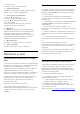 19 Pašlaik televīzijā izmantošana Populārākie Lai atvērtu Pašlaik televīzijā… 1 - Nospiediet TOP PICKS (Populārākie), lai atvērtu izvēlni Populārākie. 2 - Atlasiet Pašlaik televīzijā ekrāna augšdaļā un nospiediet OK (Labi). 3 - Atlasiet Vairāk, lai atvērtu TV ceļvedi. 19.1 Par funkciju Populārākie Ar funkciju Populārākie jūsu TV iesaka… • pašreizējās TV pārraides Pašlaik televīzijā • jaunākos nomas video Video pēc pieprasījuma • tiešsaistes TV pakalpojumus (Catch Up TV) TV pēc piepras.
