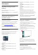 13 Nastavení barvy statického světla Ambilight… Ambilight 1 - Stiskněte tlačítko ambilight. 2 - Zapněte funkci Ambilight. 3 - Nastavte možnost Styl funkce Ambilight na hodnotu Vlastní barva. 4 - Chcete-li vybrat barvu, přejděte do části Domů > Nastavení > Předvolby zařízení > Ambilight > Vlastní barva. 5 - Vyberte požadovanou barvu a stiskněte tlačítko OK. 13.1 Ambilight, zapnutí nebo vypnutí Můžete si nastavit funkci Ambilight tak, aby sledovala dynamiku televizního programu.