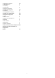Indhold 1 Startskærm 4 10.1 Om Apps 1.2 Åbn startskærmen 4 10.3 Start eller stop en App 1.1 Startskærm og kanaler 1.3 Opdatering af startskærm 4 2.1 Læs om sikkerhed 6 2 Opsætning 6 2.2 TV-stander og vægmontering 6 2.3 Tip om placering 2.4 Strømkabel 2.5 Antennekabel 6 2.6 Parabolantenne 3.1 Tastoversigt 8 3 Fjernbetjening 8 3.2 IR-sensor 10 3.4 Rengøring 11 12 5.2 Installer digitale eller analoge kanaler 12 5.1 Første installation af kanaler 5.3 Satellit 5.4 Antenne 5.