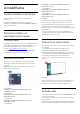 2 - Iespējot Ambilight. 3 - Iestatiet Ambilight stilu uz Pielāgota krāsa. 4 - Dodieties uz Sākums > Iestatījumi > Ierīču preferences > Ambilight > Pielāgota krāsa, lai izvēlētos krāsu. 5 - Atlasiet vēlamo krāsu un nospiediet OK (Labi). 13 Ambilight 13.1 Ambilight stils Varat iestatīt Ambilight sekot TV pārraides video dinamikai. Vai arī varat iestatīt Ambilight, lai rādītu iestatīto krāsas stilu vai izslēgt Ambilight. 13.
