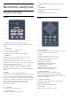 * Pastaba: „Rakuten TV“ programa yra ne visose šalyse. 3 Nuotolinis valdymas 8 – SOURCES Atidarykite arba uždarykite šaltinių meniu. 3.1 9 – SEARCH Pradėkite paiešką įvesdami tekstą. Mygtukų apžvalga Viršuje Vidurys 1 – Maitinimas (Budėjimo režimas / Įjungta) Įjunkite televizorių arba perjunkite jį atgal į budėjimo režimą. 2 – „Ambilight“ Pasirinkite vieną iš „Ambilight“ stilių. 1 – OK mygtukas Patvirtinamas pasirinkimas arba nustatymas. Žiūrint televiziją atidaromas kanalų sąrašas.