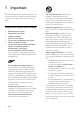 1 Important Read and understand all instructions before you use your product. If damage is caused by failure to follow instructions, the warranty does not apply. •• Important safety instructions •• •• •• •• •• •• •• •• •• •• •• •• 2 Read these instructions. Keep these instructions. Heed all warnings. Follow all instructions. Do not use this apparatus near water. Clean only with dry cloth. Do not block any ventilation openings. Install in accordance with the manufacturer's instructions.