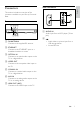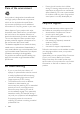 Sound mode Auto volume Select predefined sound modes to suit your video or music. Turn on auto volume to reduce sudden changes in volume, for example, during TV commercials. 1 2 3 4 5 Make sure that audio post processing is enabled at the speakers (see 'Speaker settings' on page 24). Press . Select [Sound], and then press OK. Press the Navigation buttons (up/down) to select a setting on the display: • [Auto]: Automatically select a sound setting based on the sound stream.