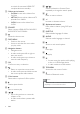 Turn off the repeat mode. Video options While watching video, select options such as subtitles, audio language, time search, and picture settings. Depending on the video source, some options are not available. 1 2 Press . »» The video options menu is displayed. Press the Navigation buttons and OK to select and change: • [Info]: Display information about what is playing. • [Audio language]: Select audio language for video. • [Subtitle Language]: Select subtitle language for video.