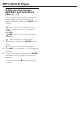 MP3-CD/CD Player Selecting a different track • Press ∞/ § once or repeatedly until the desired track number appears in the display. For MP3-CD: First press 43 once or more to find your album. • In the pause/stop position, press 2; to start playback. Finding a passage within a track 1 2 During playback, press and hold ∞ or § . ➜ The CD is played at high speed and with reduced volume. When you recognize the passage you want, release ∞ or § to resume normal playback.