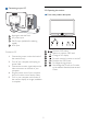Connecting to your PC 2.2 Operating the monitor Front view product description Kensington anti-thief lock AC power input DVI-D input (available for selecting model) VGA input : To access OSD menu. : Return to previous OSD level. : Change to 4:3 display. : To switch monitor’s power on and off. : To adjust the OSD menu. : To change the signal input. : SmartImage Lite. There are 3 modes to be selected: Standard, Internet and Game. Connect to PC 1. 2. 3. 4. 5.