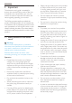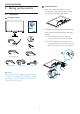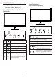 2. Setting up the monitor Model 247E4QHAD, 247E4LHAB,247E4QHKAD: 2.2 Operating the monitor Front view product description Model 247E4QSD, 247E4LSB, 247E4QHSD, 247E4LHSB: 5 5 7 7 6 4 3 6 4 3 2 Switch monitor’s power ON and OFF. 2 Access the OSD menu. Switch monitor’s power ON and OFF. Return to previous OSD level. Adjust the speaker volume. Access the OSD menu. Adjust the OSD menu. Return to previous OSD level. Change the signal input source. Change display format. SmartImage Lite.