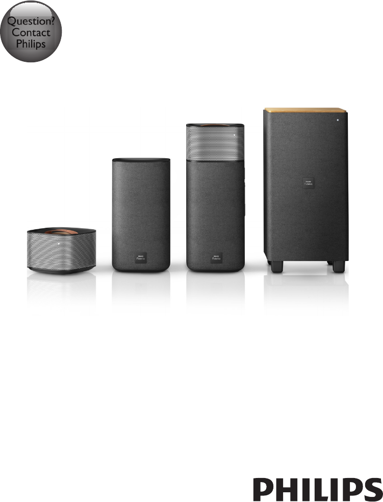 English Contents 1 Important 2 2 3 3 3 4 4 2 Your product 4 4 5 6 7 7 Safety Care for your product Mains fuse Care of the environment Compliance Help and support Main unit Remote control Wireless speakers Wireless subwoofer Connectors 3 Connect and set up Connect the main unit Charge speakers Pair up with speakers/subwoofer Place speakers Connect to TV Connect digital devices through HDMI Connect audio from TV and other devices 8 8 8 9 9 10 11 11 4 Use your product 12 12 12 13 14 14 15 15 5 Prod