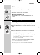 SC479_book.qxd 06-07-2004 09:55 Pagina 9 ENGLISH 9 Beltclip Connecting to the Parent Unit 1 Slide the wider side of the clip into the small rectangular recess on the back of the Parent Unit. Make sure the pins on the underside are above the circular recess. 2 Press the clip downwards until it clicks in position. Disconnecting from the Parent Unit • Press the visible pin in the circular recess upwards and lift the clip outwards.