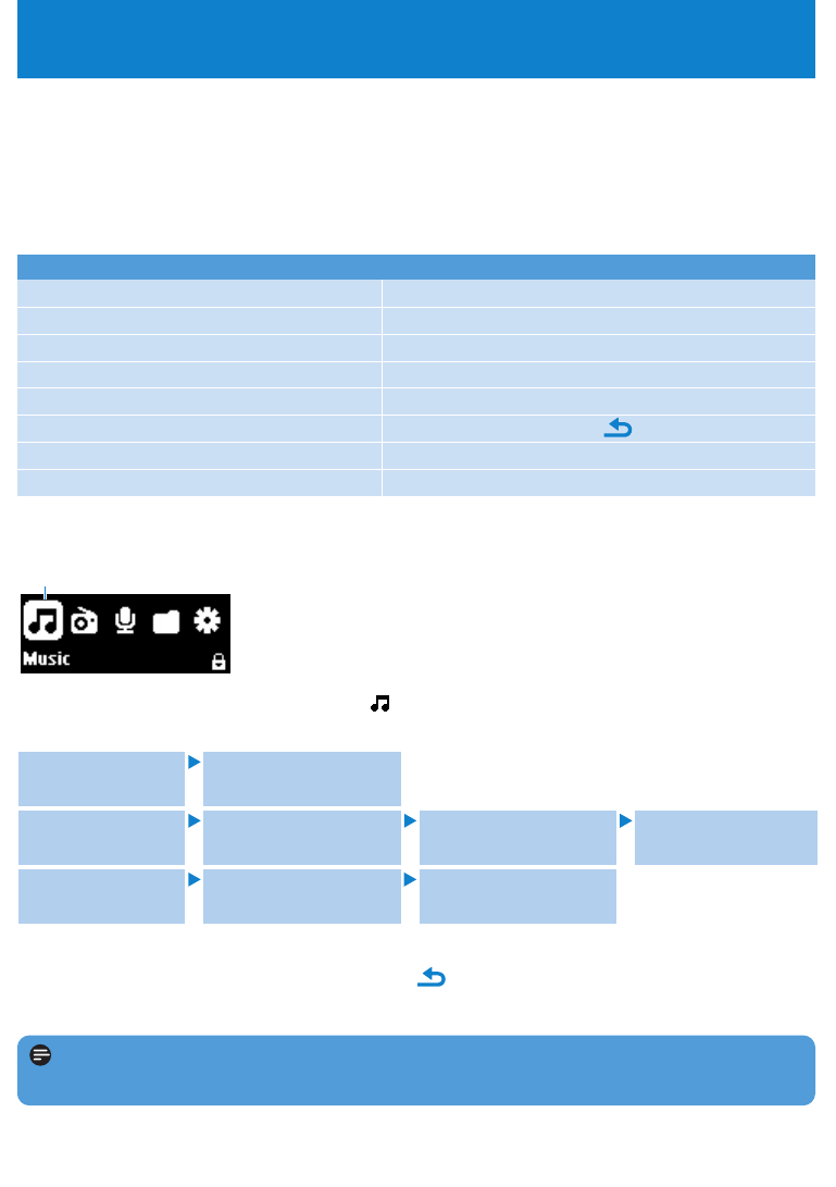 1 A partir do menu principal, selecione para entrar no modo de música.