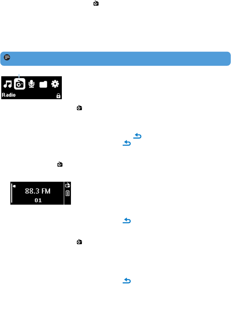 A partir do menu principal, selecione  para entrar no modo de rádio.
