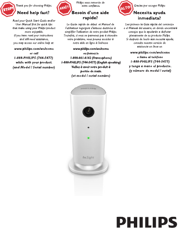 1 Su monitor inalámbrico para el hogar Lea y comprenda el documento de seguridad incluido antes de usar este monitor. Para acceder a los servicios de asistencia técnica de Philips, registre su producto en www.philips.com/welcome.