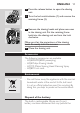 14 English ,, Replace the shaving heads. See chapter ‘Replacement’. 2 The shaver does not work when the on/off button is pressed. Cause 1: the battery is empty. ,, Recharge the battery. See chapter ‘Charging’. Cause 2: the appliance is not connected to the mains. ,, Put the powerplug in the wall socket. 3 The shaving unit has come off the shaver. The shaving unit has not been placed correctly.
