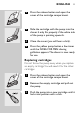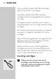 8 ENGLISH Charge indications Battery running low the battery is running low, the bottom C ◗ When battery light burns red during shaving. ◗ When you switch the shaver off while the battery is nearly empty, the bottom battery light blinks red twice.This will happen four times with brief pauses in between. ◗ When you start charging the shaver while the battery is running low, the bottom battery light blinks red for max. 3 minutes.