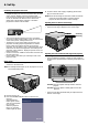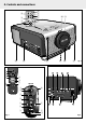 6. Set Up Inserting the batteries in the compact remote control Horizontal angle (horizon) • Adjust or correct a possible tilted picture by turning the horizontal adjusters to the desired position. Push Standby On/O ff Video Data AVMute Mute Lamp RC Volume Menu OK Video S-Vide o in Video in Data USB in L Au dio R 1. Push and slide the lid in the direction of the arrow. 2. Install two ‘AAA’ batteries as indicated inside the battery compartment. 3. Replace the lid and snap it into place.